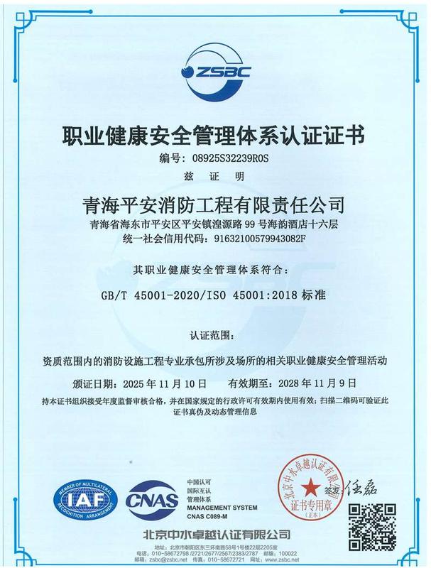 职业健康安全管理体系证书